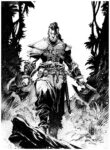 Visuellement Glénat a voulu également s’émanciper de l’univers de Frazetta en laissant le champ libre à ses dessinateurs pour imaginer leur vision de Conan. Si globalement on reste toujours sur un visuel d’un Conan musclé aux longs cheveux noirs, la version proposée dans Au-delà de la rivière noire est sans doute la plus réussie et la plus fascinante. On y voit un Conan plus mystérieux, plus dangereux, le corps recouvert de tatouages, sa coupe de cheveux inédite. C’est aussi pour le moment l’album qui me semble plus abouti.