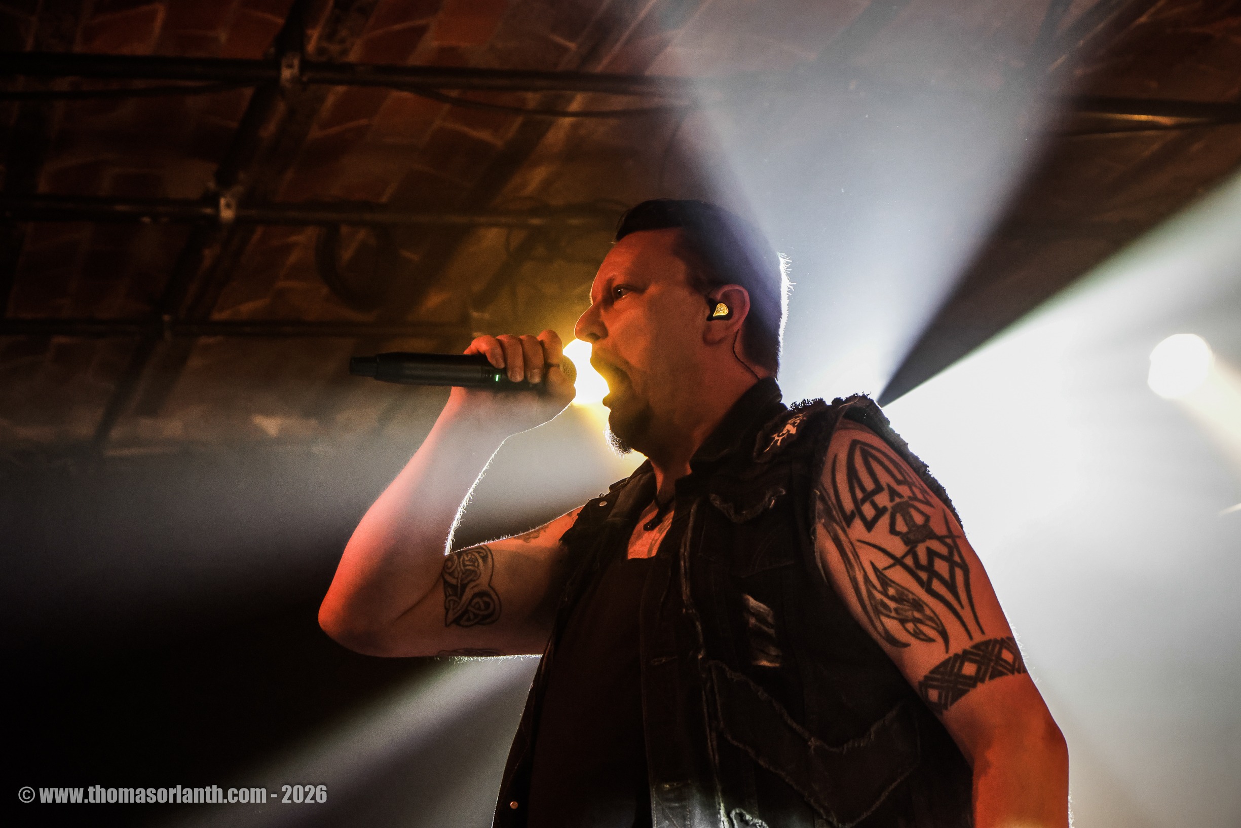 Il est presque 18 heures en ce dimanche 22 février 2026, et le Cernunnos Pagan Fest bat encore son plein dans les allées de la Ferme du Buisson. Depuis deux heures maintenant, la poussière de scène est retombée sur la prestation de Wolfchant, et pourtant l’adrénaline semble encore circuler dans les veines des Bavarois. Première date en France pour le groupe fondé en 2003 dans la Forêt Bavaroise ; cela parfait au Cernunnos !