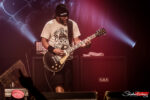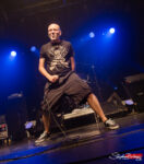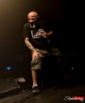 De part et d’autre du frontman mobile, deux musiciens stables : A sa gauche, Daniel Descieux, guitariste qui abat riffs basiques et directs ainsi que passages inquiétants. Les yeux rivés sur son manche et le sourire aux lèvres, il montre qu’il s’éclate sans en faire des caisses, même s’il s’autorise un petit solo en milieu de show. A droite du chanteur, Phil Curty, en place depuis la formation de Lofofora, se montre carré et sérieux, avec son regard à la fois perçant et impénétrable. Au fond de la scène, Vincent Hernault s’éclate sur sa batterie, en agrémentant certaines interventions de Reuno de quelques plaisanteries sympathiques.