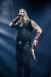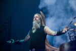 Quant à Johan Hegg, il ne cesse de se munir d’une variation d’accessoires lorsqu’il ne brandit pas son poing face au Zénith. Afin d’illustrer le festif Raise Your Horns, particulièrement convivial, le frontman se sert de sa corne XXL en guise de gobelet pour sa cervoise, trinquant à la santé de son fidèle public. Le bougre n’hésite pas non plus à sortir son marteau Mjöllnir, arme du dieu Thor, dès qu’un morceau le permet !