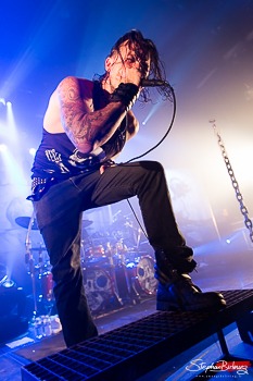 Après une demi-heure de pause, la fosse se réveille complétement quand les japonais de DIR EN GREY investissent la scène, provoquant des hurlements entre hystérie kawaii et growleurs testosteronés. Deux ans quasiment jour pour jour après leur dernier passage à Paris à la Cigale, Kyô et sa bande viennent se rappeler à notre bon souvenir.