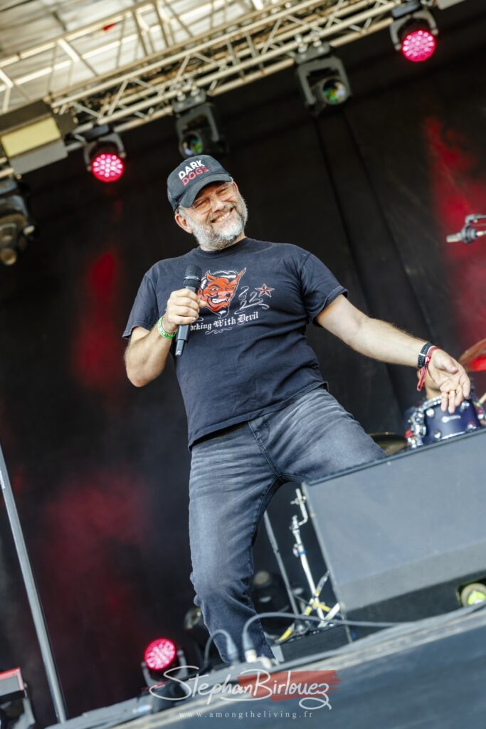 La première grosse cartouche fut tirée en plein après-midi avec DEATH DECLINE de Dijon, qui sous une chaleur d’enfer, s’imposa en force à Cercoux. Impossible de passer à côté de leur prestation en mode rouleau compresseur. Leur death/trash a fait son effet, soutenu par de nombreux fans.