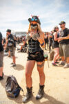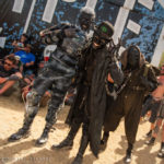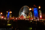 Le site s’est « relooké » (un peu), avec ces deux portes aux rideaux d’eau rafraîchissants et diffusant des formes et autres logos HELLFEST du meilleur effet, ou encore la palissade allant de la Main 2 à la grande roue complètement revue par les artistes de Monic la Mouche et la boule incandescente qui trône maintenant sur le Fest.
