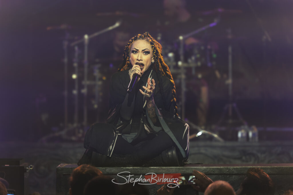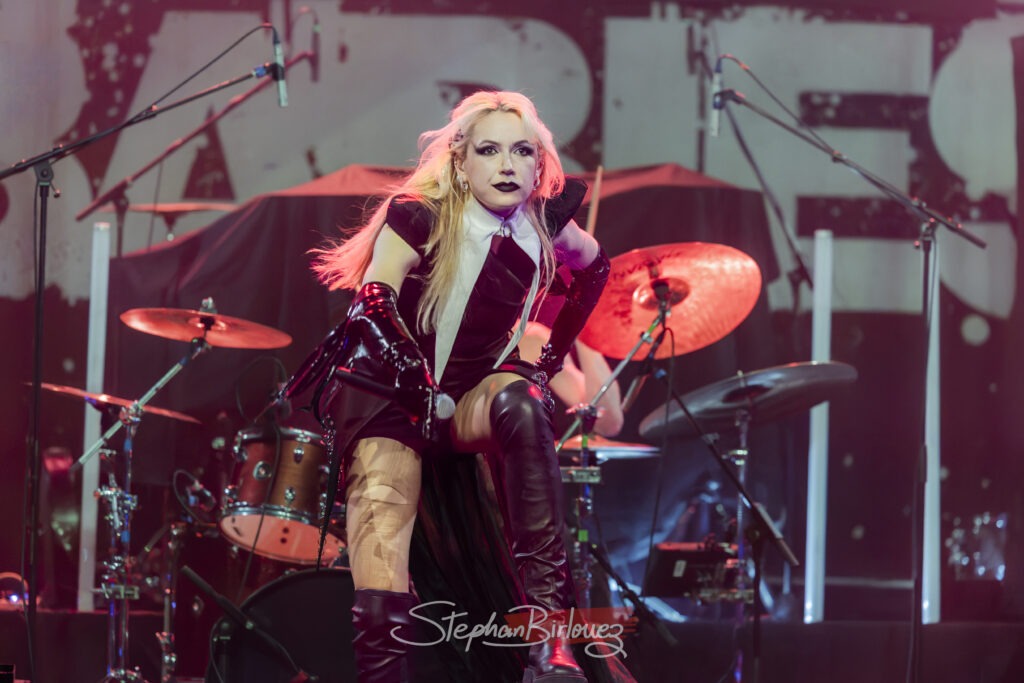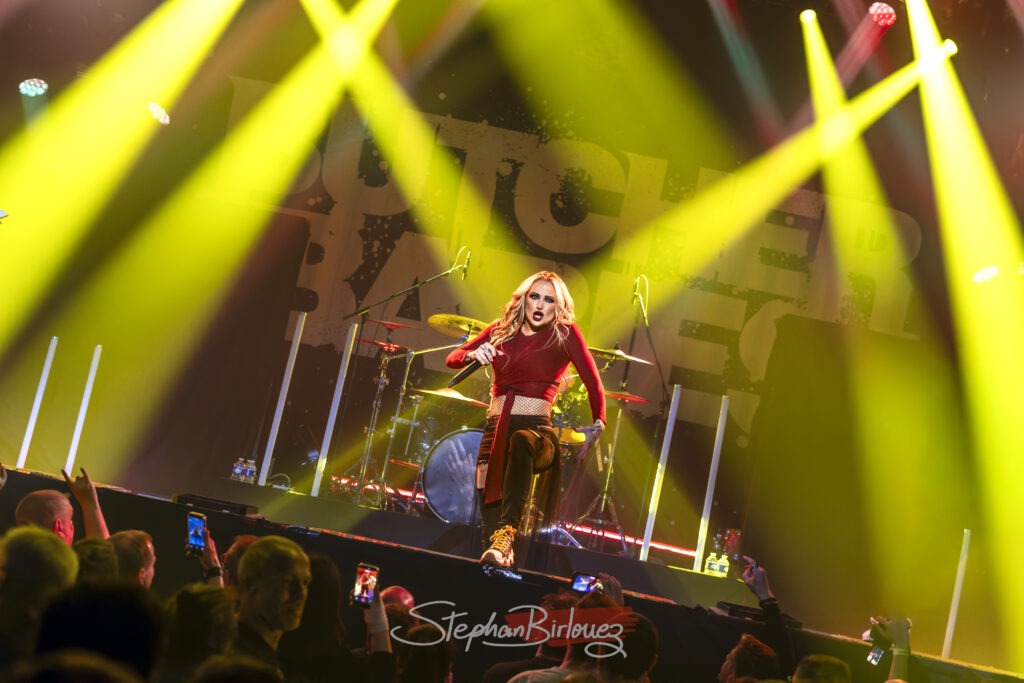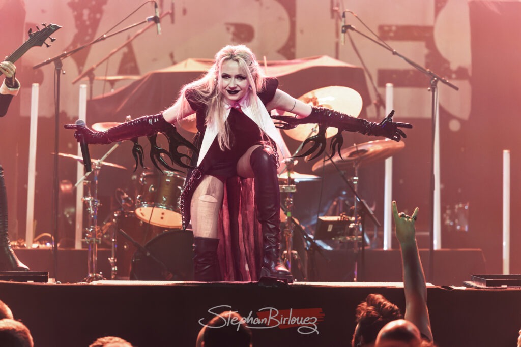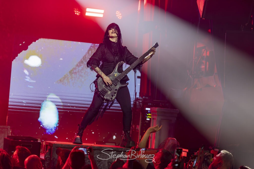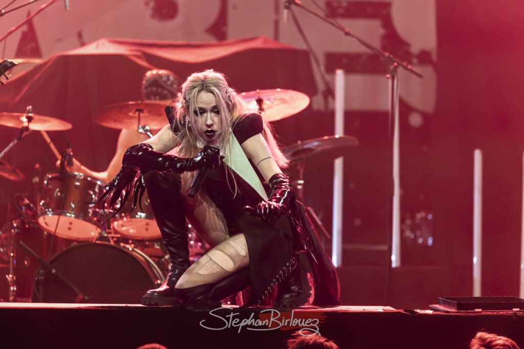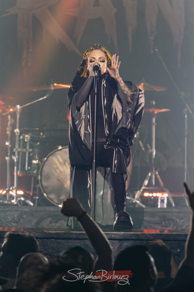 À noter aussi : un solo de batterie remarquable, qui remet une couche d’intensité. Et surtout, Heidi descend dans le pit pour provoquer un circle pit d’anthologie : elle se place au centre, en fusion totale avec la salle — sourire aux lèvres, comme si l’énergie circulait en boucle entre scène et public.