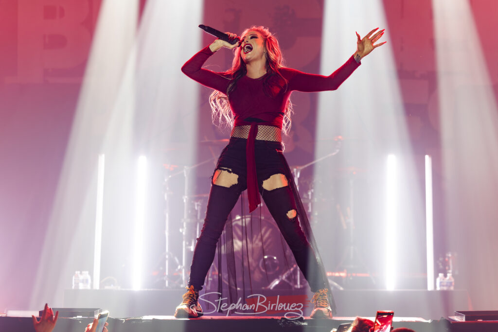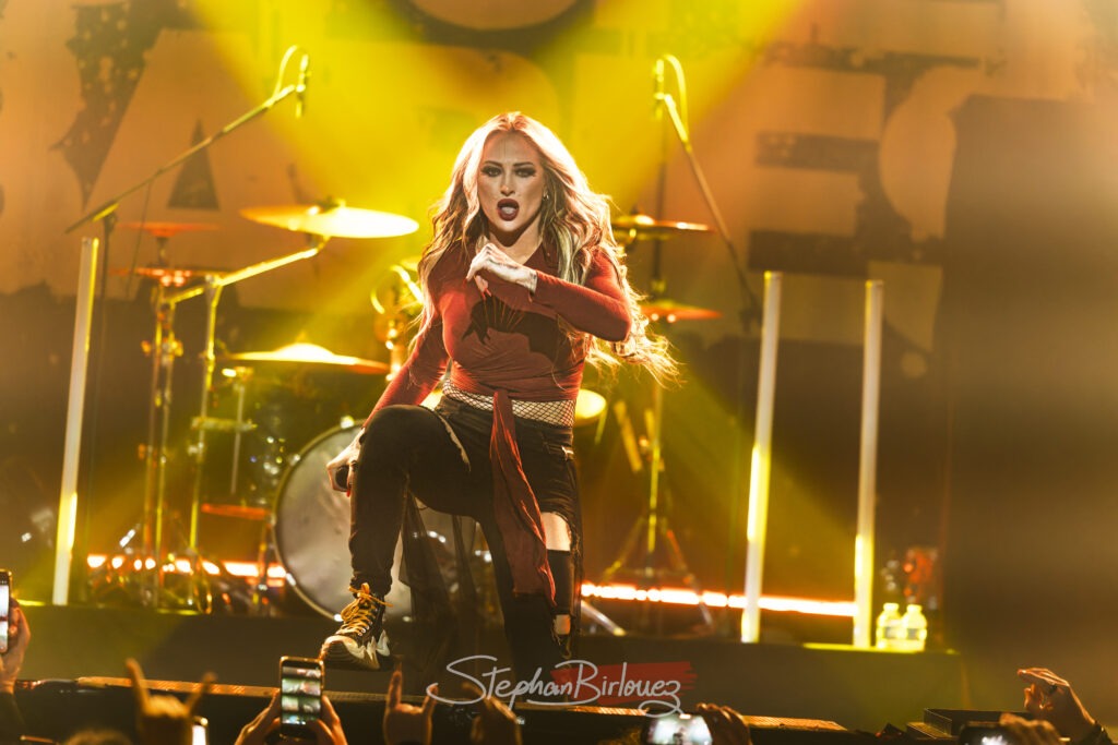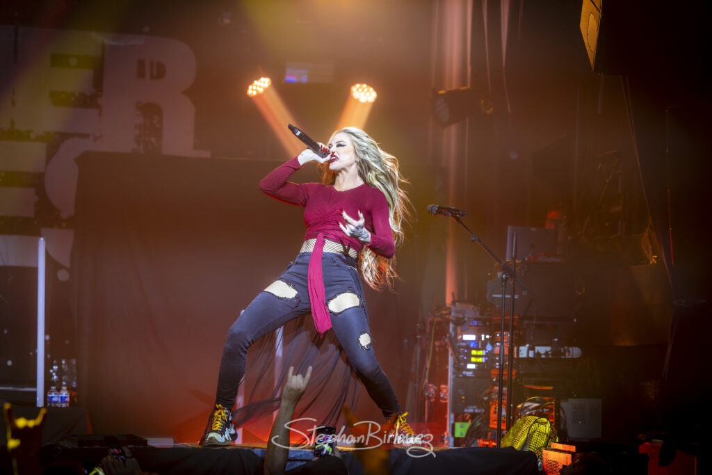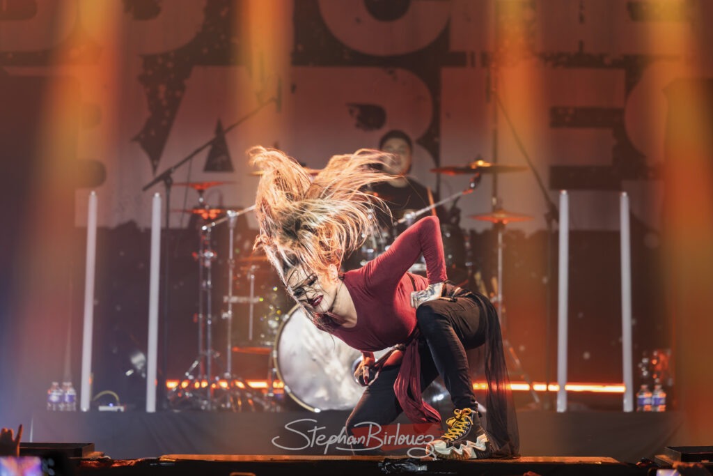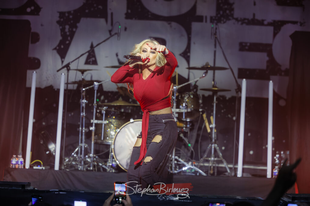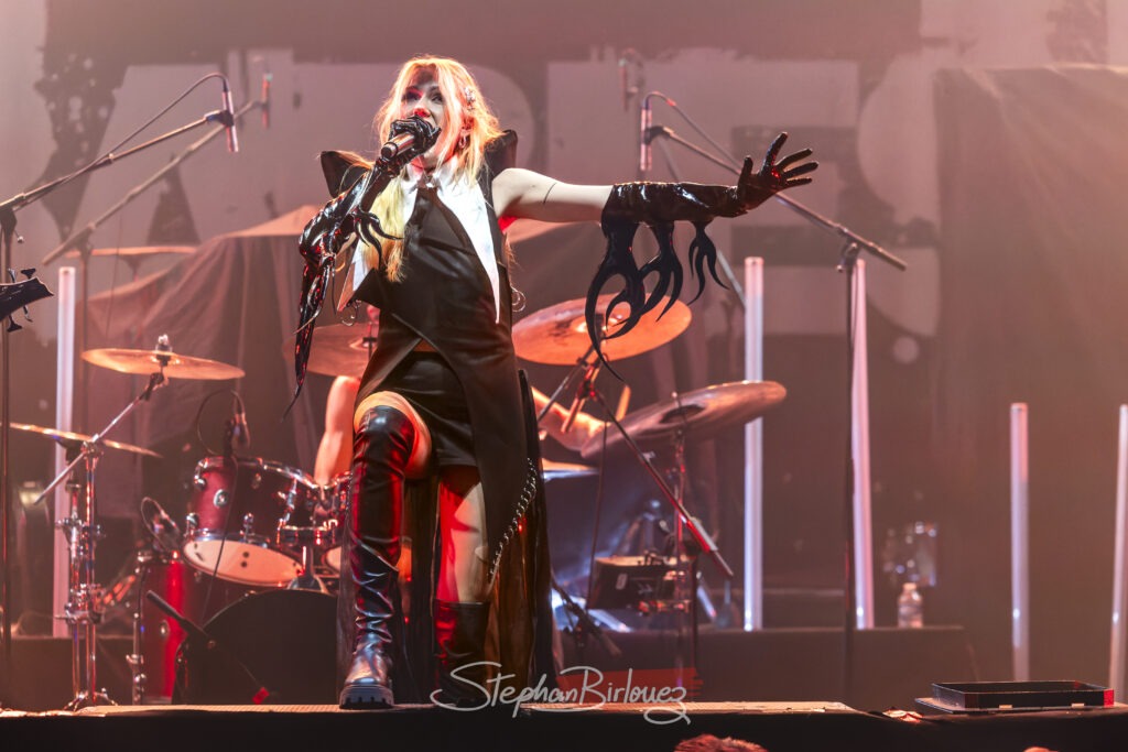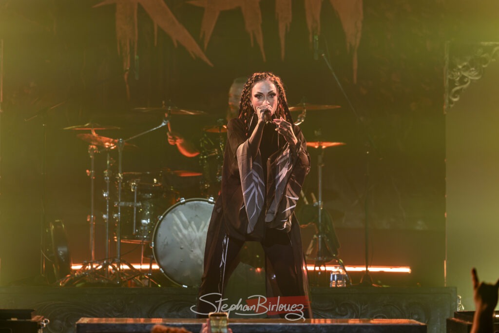 À noter aussi : un solo de batterie remarquable, qui remet une couche d’intensité. Et surtout, Heidi descend dans le pit pour provoquer un circle pit d’anthologie : elle se place au centre, en fusion totale avec la salle — sourire aux lèvres, comme si l’énergie circulait en boucle entre scène et public.