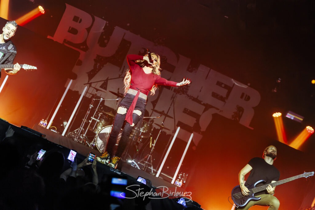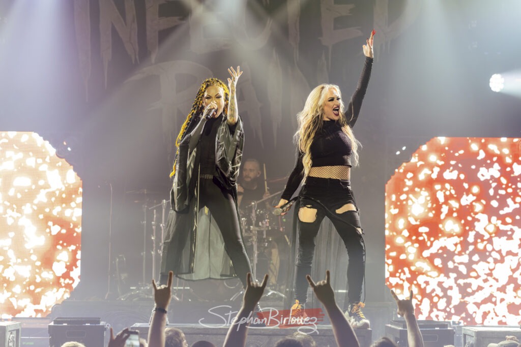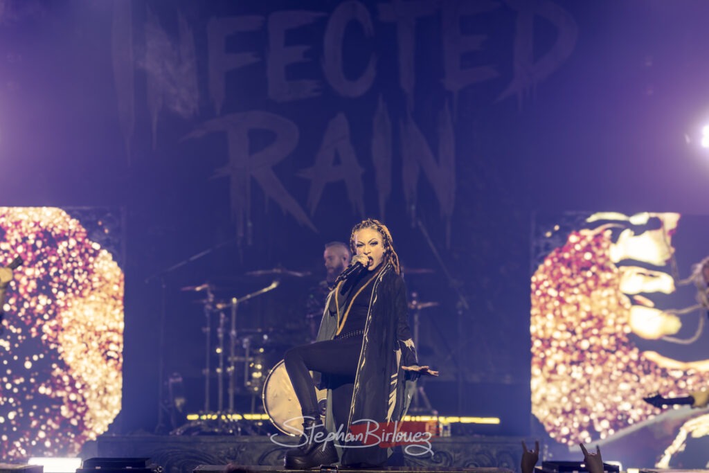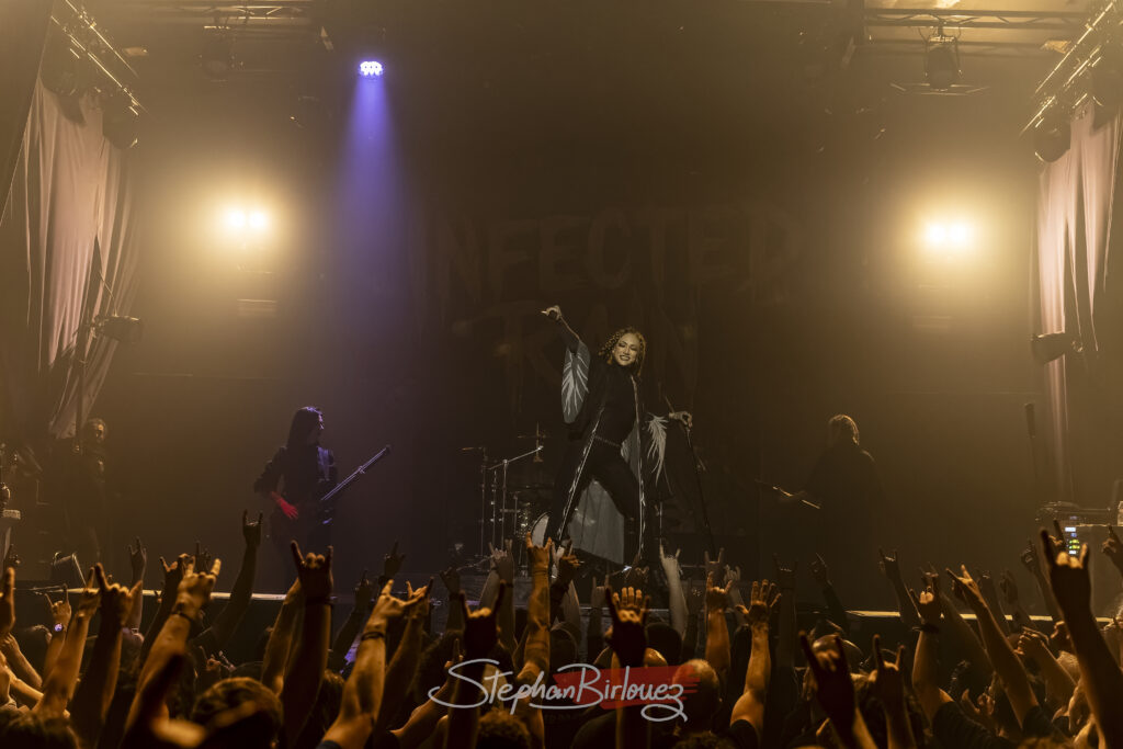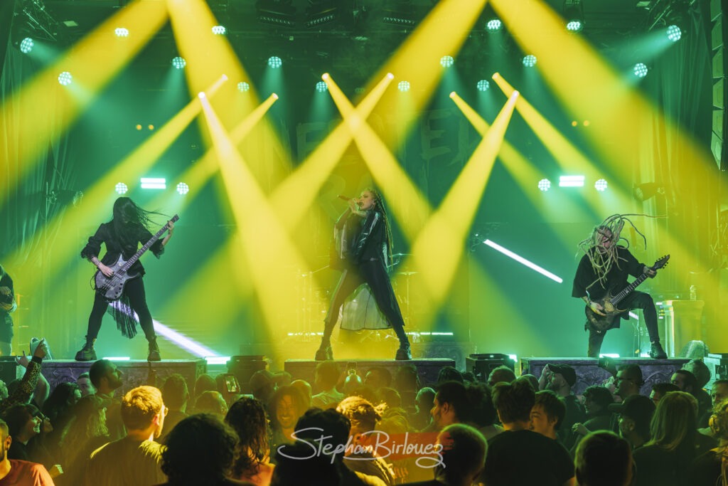 Soirée sous haute intensité à La Machine : trois groupes, trois identités, et surtout trois frontwomen (au sens large) capables de tenir une salle à bout de bras. De l’ouverture visuelle de Black Spikes au maelström des Butcher Babies, jusqu’au final implacable d’Infected Rain, l’affiche avait tout pour transformer le boulevard de Clichy en zone de turbulences.