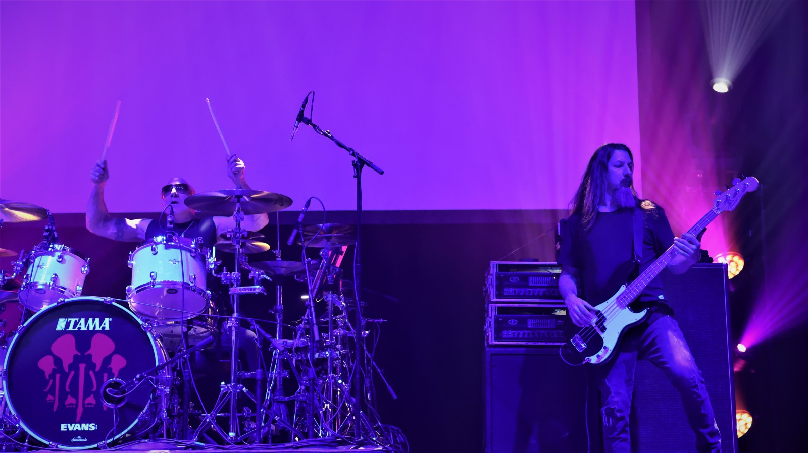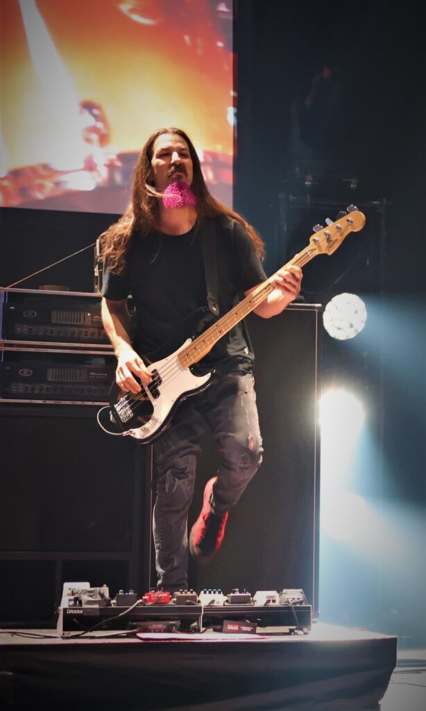 Reprise percutante avec un drum solo de Kenny qui a toute sa place au sein du quatuor. « Energy » de l’album « What Happens Next » (2018), est l’un de mes morceaux préférés, avec un hard rock au son des eighties et aux riffs acérés. Il donne le tempo du second set, plus énergique. Un retour dans les années 1970 avec des notes bluesy comme le titre le laisse suggérer « E. 104th St NYC 1973 » durant lequel Bryan, à la barbe rose pourpre et aux baskets roses, slappe sa basse comme si c’était un jeu d’enfant tandis que Satch fait chanter, pleurer ou crier sa six-cordes.
