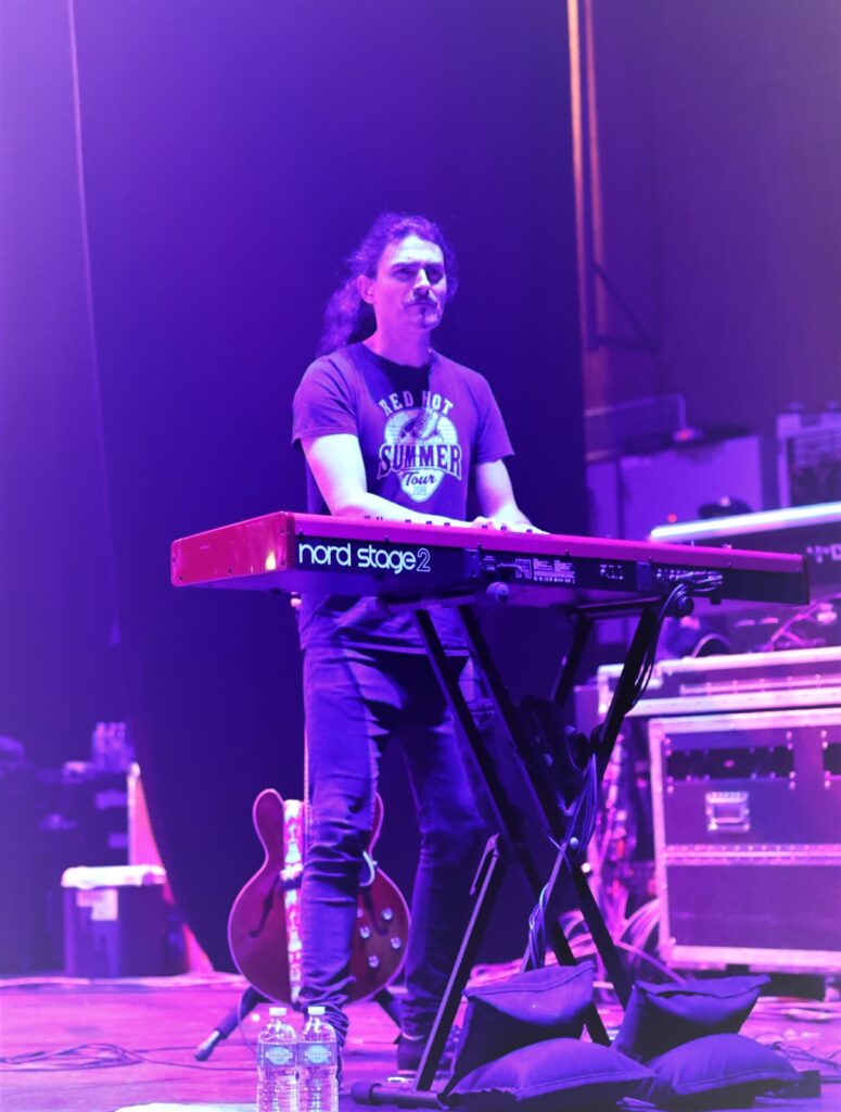 Bryan, perché à côté de Kenny, reste longtemps sur le haut de l’estrade, ce qui permet de mieux admirer la maîtrise de son slap à la basse. Place à une démonstration talentueuse du jeu du keyboardist sur « Thunder High on the Mountain ». « One Big Rush », avec des rythmes plus rock puis, plus groovy avec « Blue Foot Groovy » sur lequel Joe change de guitare, envoûtent la salle. Joe nous révèle : « Cela fait trois ans que nous avons attendu de venir ici ! » Pas étonnant avec la pandémie due au Covid-19.
