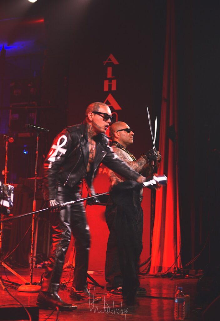 Dès le premier titre, l’ambiance est posée : sombre, directe, viscérale. Pour ceux qui ne connaissaient que de nom le mari de Kat Von D, cette entrée en matière suffit à les captiver. Le show se veut spontané, brut, sans artifice superflu – et c’est justement cette sobriété qui fonctionne à merveille. Chaque titre est craché comme une prière rageuse, une incantation à la fois urbaine et mystique. Un concert court, intense, sans détour – à l’image de l’artiste. Pas de compromis, pas de concessions. Juste Leafar, sa vision, son esthétique, son feu intérieur.