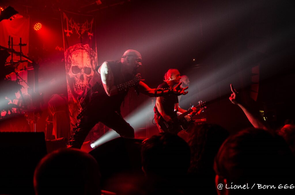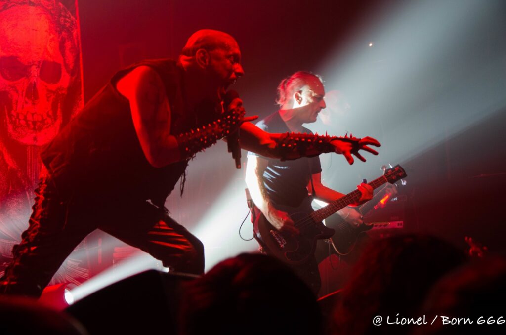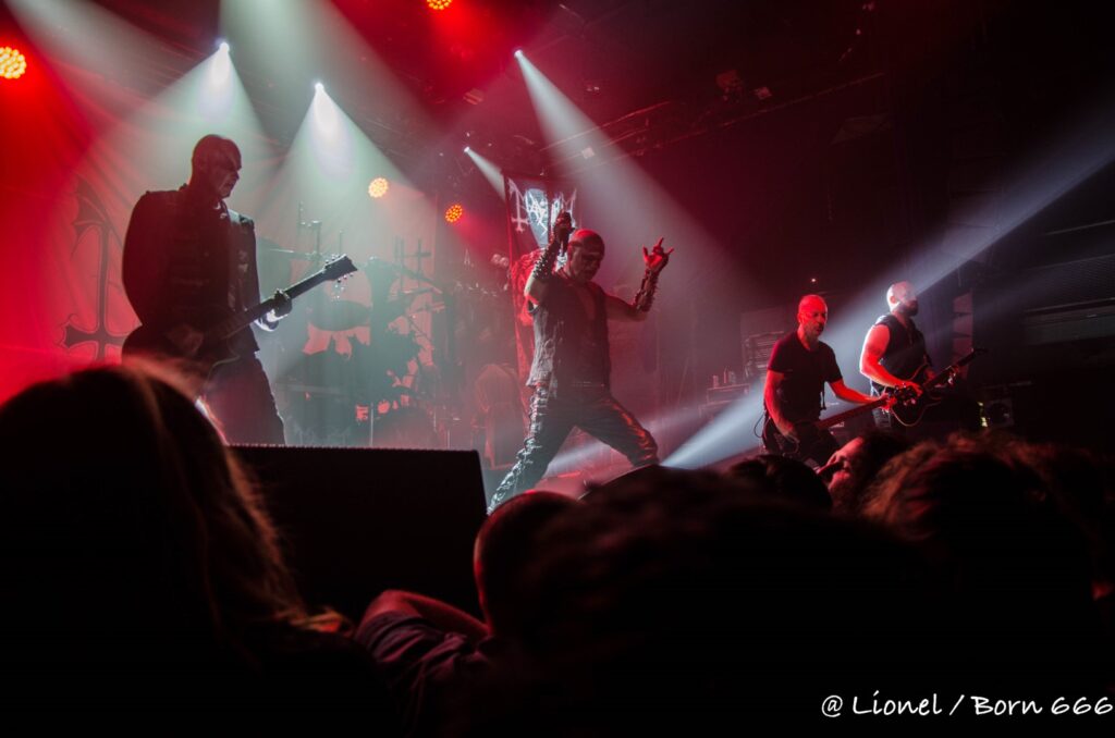 Necrobutcher est remonté à bloc et scrute le public dans les yeux ; quant à Attila il nous sort le grand jeu avec sa façon si théâtrale et inquiétante de chanter tout en se positionnant sur le devant de la scène.