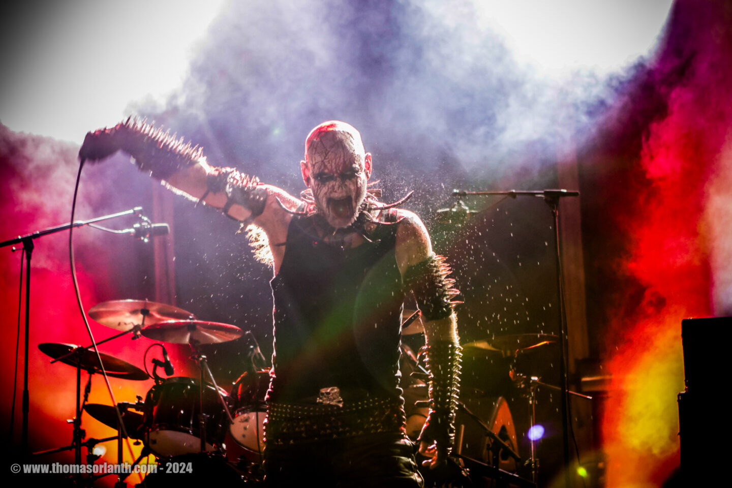 Exumer est un des vieux groupes de thrash metal à l’ancienne, qui a peut-être connu moins de succès que leurs compatriotes de Kreator ou de Sodom pour ne citer qu’eux, tant la scène thrash allemande est légendaire, mais qui n’en a pas moins de qualités. Pour s’en convaincre la prestation explosive qu’ils ont donné avec un Mem Von Stein toujours aussi allumé sur scène. Mais après tout, c’est bien ça l’esprit du thrash : la lumière a tous les étages, mais version flamboyante !