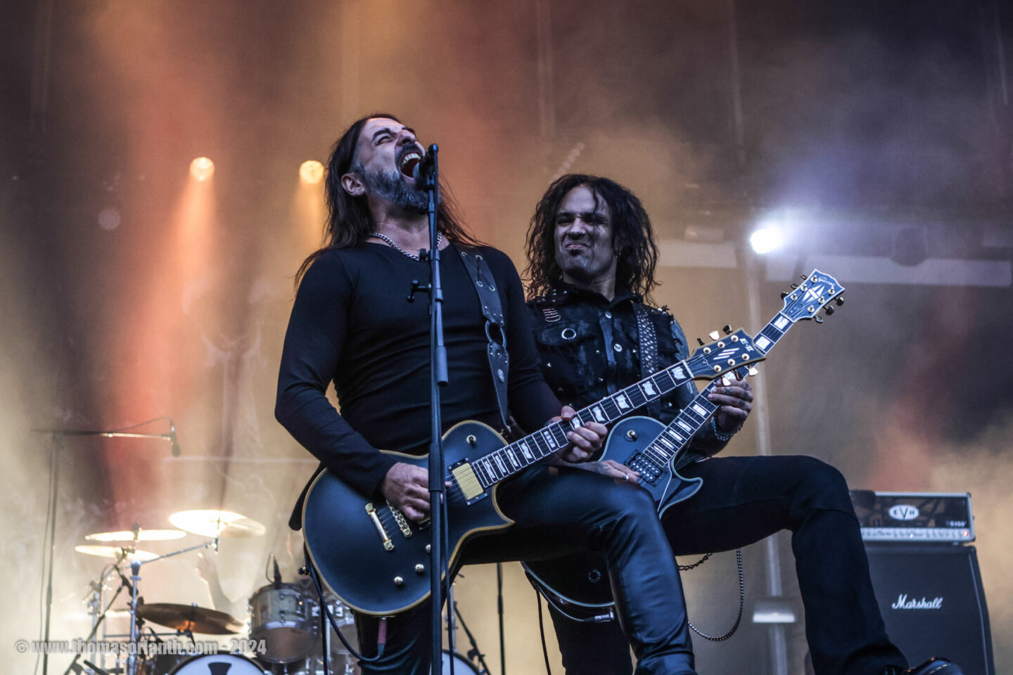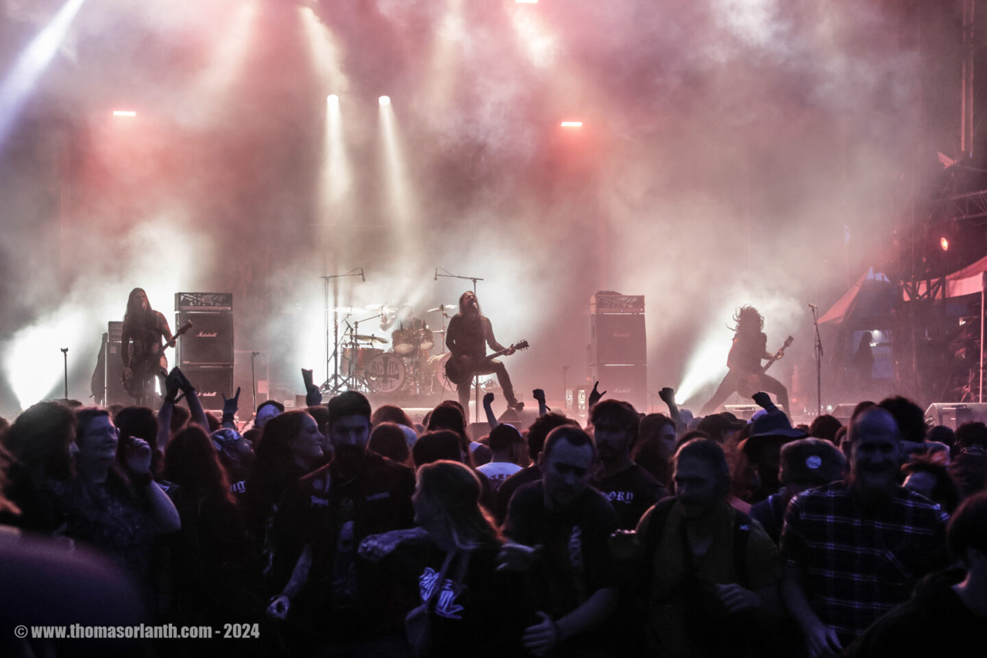 Nous ne sommes jamais étonnés d’une prestation des grecs de Rotting Christ puisqu’on les voit souvent et que l’on prend toujours un malin plaisir à retrouver ce tempo qui nous fait chavirer. La setlist est souvent la même mais l’on prend toujours autant de plaisir à voir la prestation tellement carrée de la bande à Satis. Entre chant grecs et riff ultra puissant dicté par le rythme lourd hypnotisant et puisant de son frère. Du dernier album tout juste sorti (Pro Xristou) « Like Father, like Son » ne départ pas du reste puisqu’on est habitué à la construction de leurs titres.