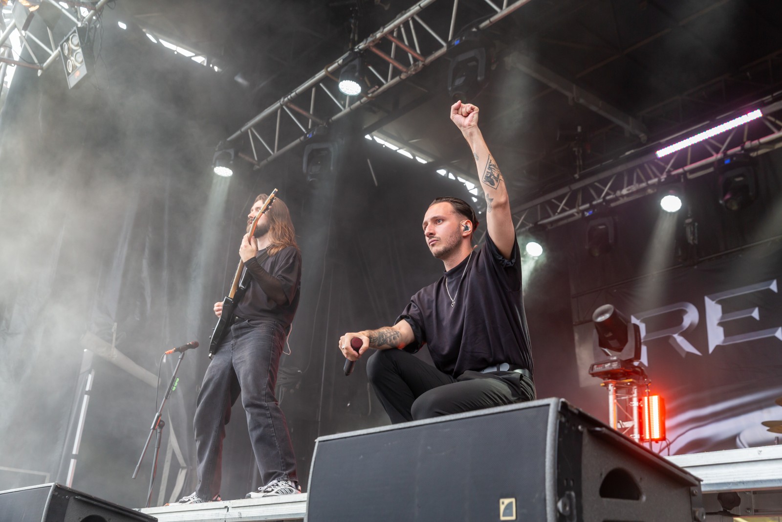 Des riffs tranchants, des breakdowns bien sentis et une alternance chant clair / growl qui coche toutes les cases du genre. Pas de surprise, mais une exécution solide : Resolve sait ce qu’il fait, et il le fait bien. Les morceaux s’enchaînent avec fluidité, et le public, déjà bien chauffé, répond présent.