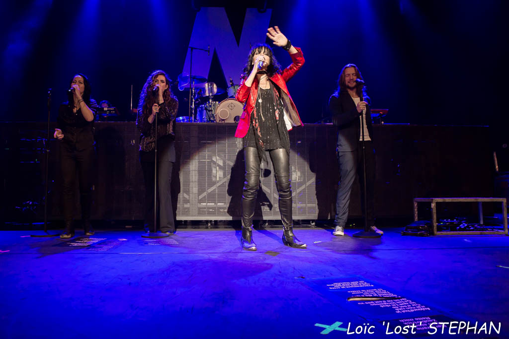Ce soir, pas trop de photographes, un pit spacieux, trois titres. Et une contrainte. LA contrainte. Inédite dans mon expérience. Nous ne pouvons utiliser que quatre photos ! Il y a deux guitaristes, un bassiste, deux claviers, un batteur, trois choristes et Nena ! Pourquoi proposer à des photographes de rester trois titres pour poser une telle limite. Quelqu’un a réfléchi au nombre de photos à autoriser ? Pas trop longtemps espérons, l’intelligence humaine devrait être utilisée à d’autres fins ! Je peux comprendre une validation des images, l’artiste ayant le droit de contrôler son image. Mais là, il est désolant de ne pouvoir proposer que quatre images alors qu’il y a une belle matière sur scène, que les fans vont sortir une ribambelle d’images de leur téléphone, que de belles images peuvent valoriser un article.