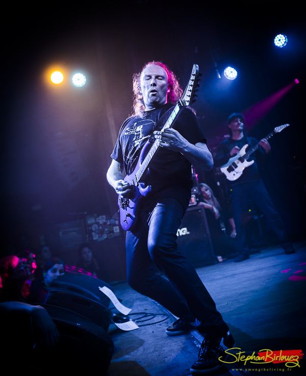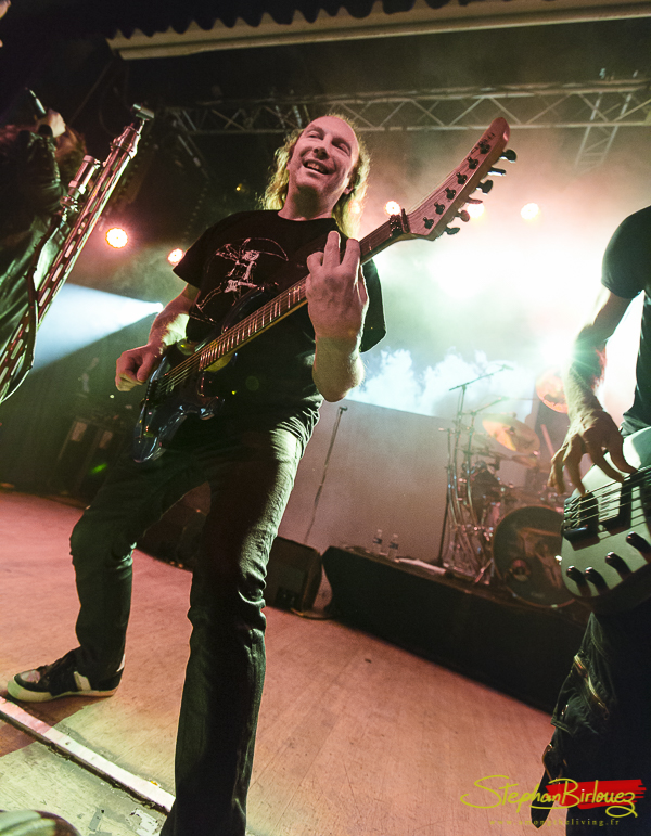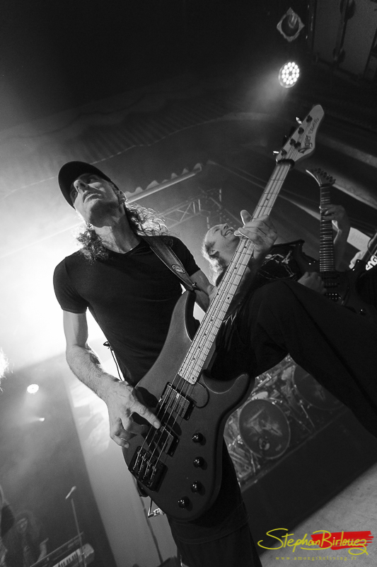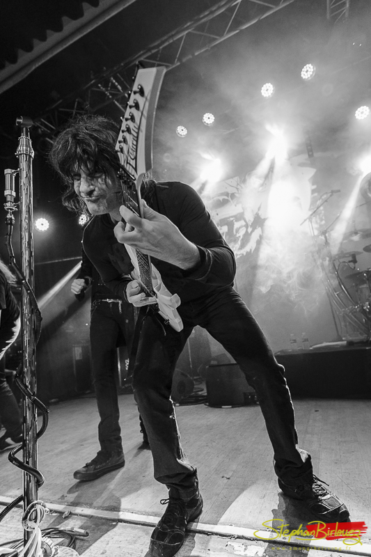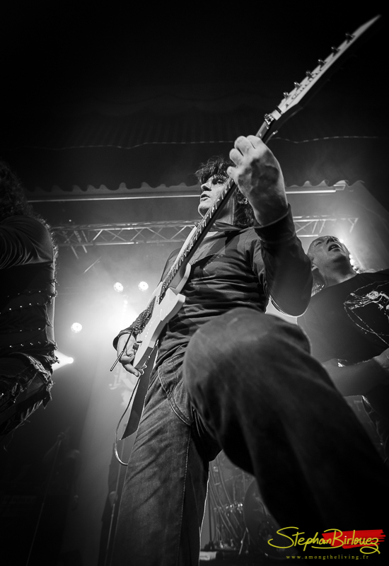 Le set est cours mais ultra efficace. Le quatuor, bien en place, nous acène une volée de titres qui feront le boulot face à un public plutôt réactif à la prestation. Marco, le guitariste, assure aussi le chant sur certains passages, et je peux vous dire qu’il n’est pas là en figuration. La voix juste et les riffs acérés, il assure un co-lead de qualité et avec la banane en supplément.