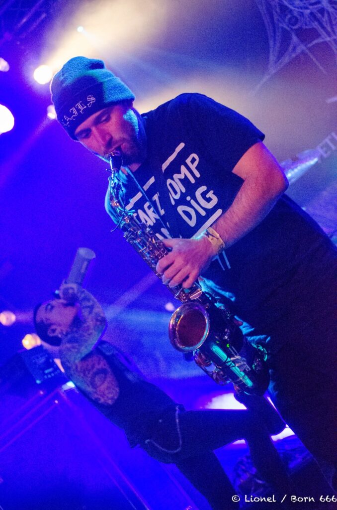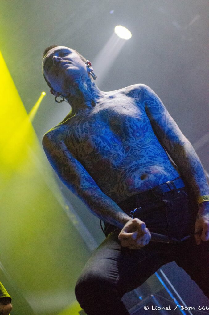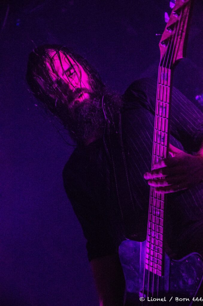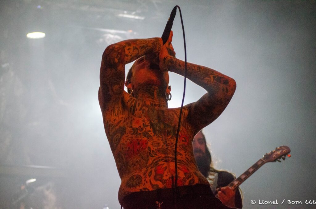Le chanteur est un spectacle à lui tout seul. Son visage se déforme au fil des chansons entre chant growlé et passage black. Ses mains grattent son visage à se faire saigner dans des contorsions impossibles. Il vit ses textes devant nous et nous transmet tout son mal-être.