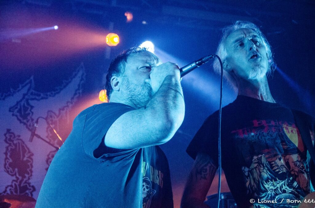 Visiblement, ils ont l’air très heureux sur scène, ils changent de place, bougent, s’amusent. Une véritable communion s’établit avec le public. Leur death/trash est des plus subtile.