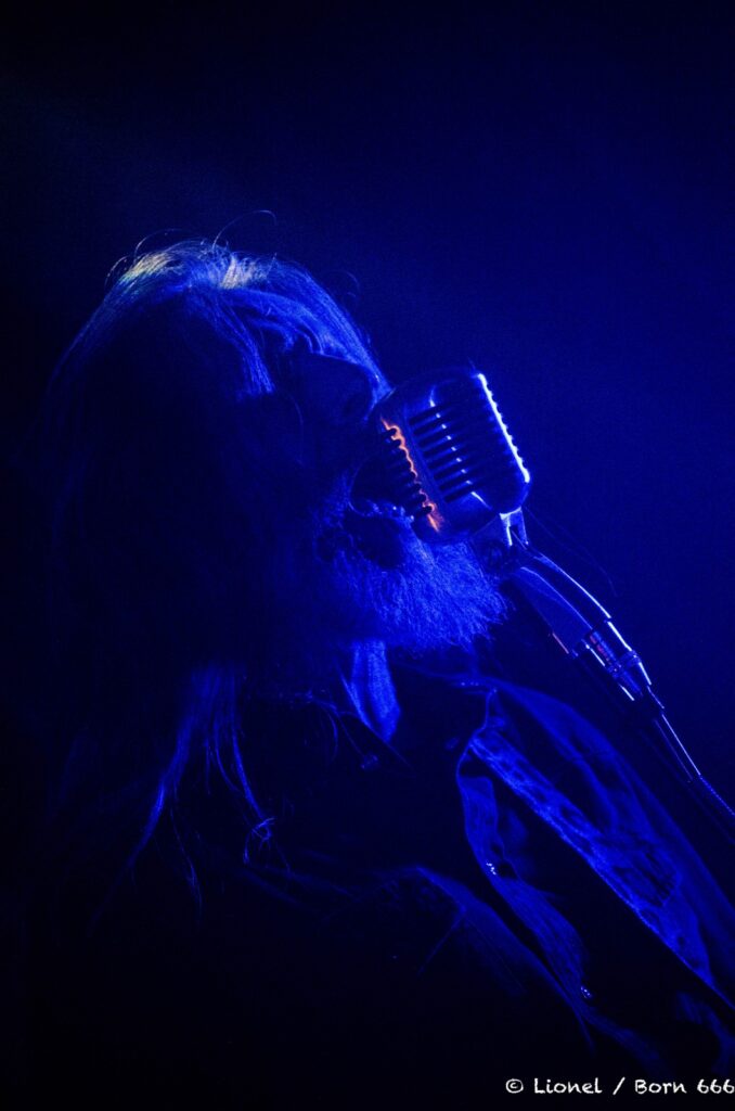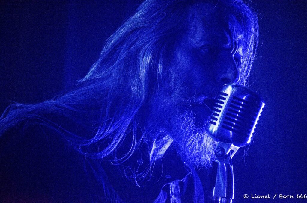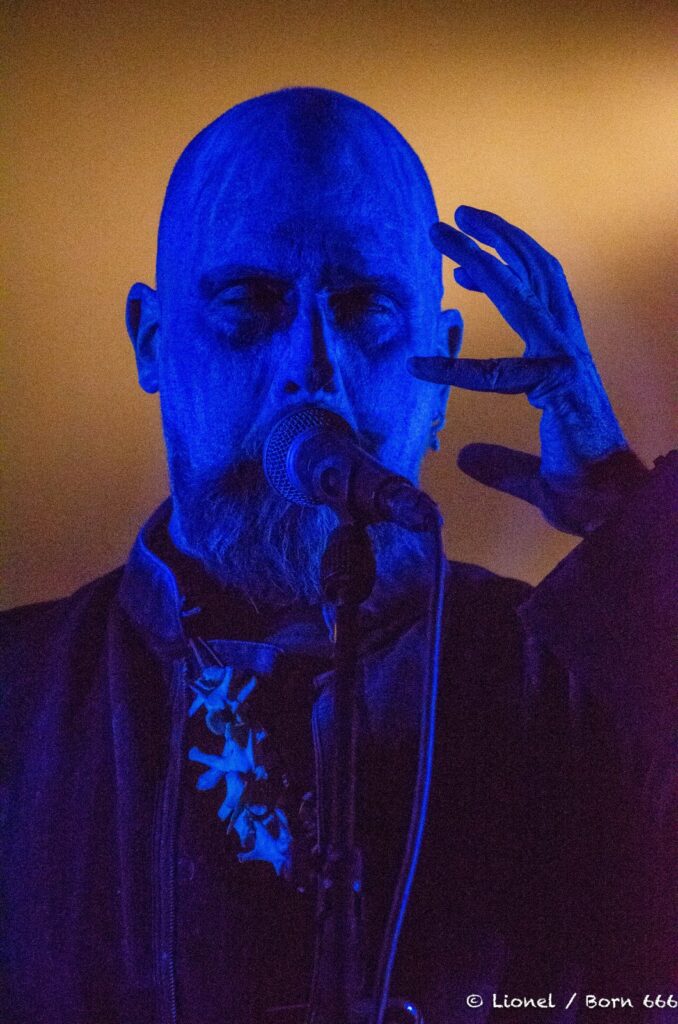Philippe « SAS de l’Argilière » Courtois sait tenir une scène rien que par sa gestuelle envoûtante. Il a des attitudes théâtrales avec ses mimiques, son regard profond lorsqu’il scrute les festivaliers des premiers rangs.