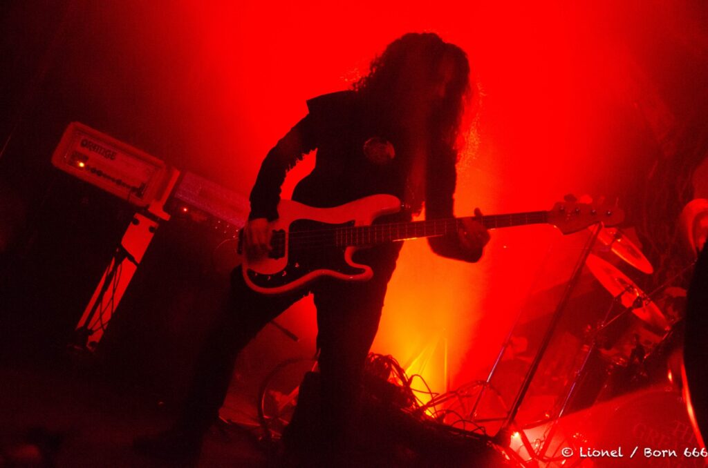 Même si au sein de TGOO, les musiciens tournent beaucoup, on ressent toujours les frémissement que ce soit avec un film projeté en noir et blanc, création de la « H.P. Lovecraft Historical Society » à Rennes pour les 25 ans de Garmonbozia ou ce soir dans des lumières aveuglantes où l’on découvre les musiciens cachés derrière leurs pieds de micro customisés à limage de Cthulhu.