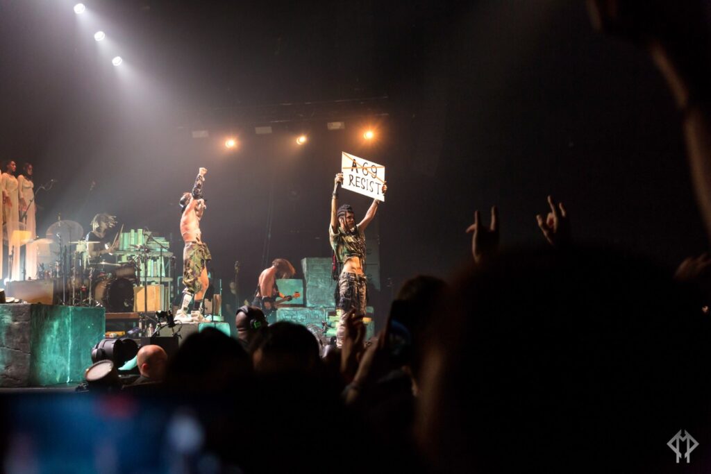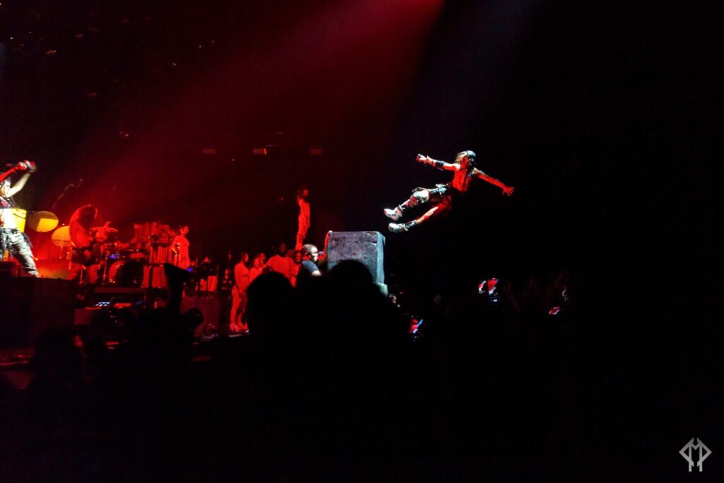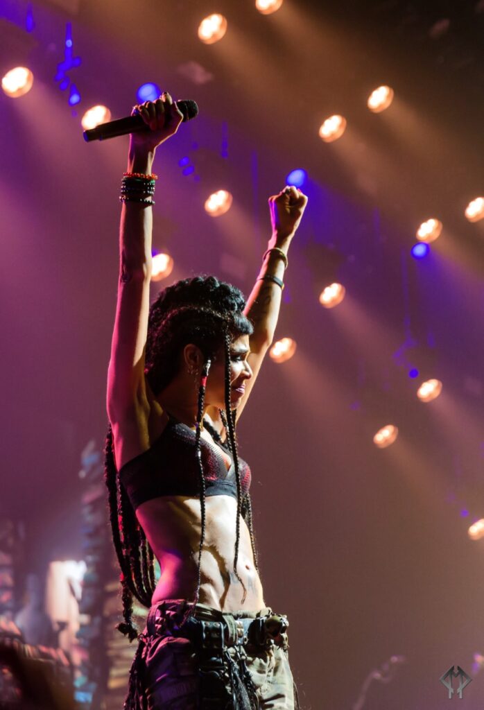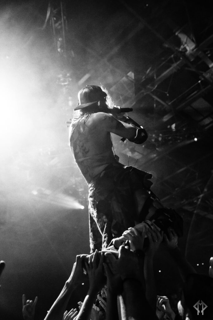 Frah est, comme à son habitude incontrôlable et multiplie les slams dans le public, déclenche un des plus grand circle pit que le Zenith ait dû connaître autour de lui, perché sur la petite scène centrale. Il fait le show et se donne à 200%.