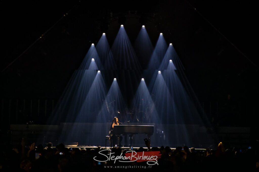 Le set est rudement bien rodé, Amy jouant sur toutes les cordes sensibles. Des titres emblématiques au dernier opus, en passant par ceux interprétés au piano à queue sur le devant de la scène, musicalement tout y est. Elle saura charmer son public en clamant haut et fort que la France est « spéciale » pour elle et en particulier son public (on peut imaginer avoir le même discours sur toutes les dates non ?).