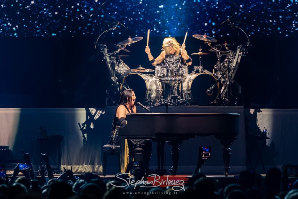 Entre douceur et engagement, WT poursuit son set, à l’instar de ce Raise Your Banner sur lequel Sharon brandit un drapeau Ukrainien, de The Reckoning chanté en duo avec Amy Lee (initialement en duo avec Jacoby Shaddix – PAPA ROACH), ou encore avec Supernova qu’elle dédie à son père décédé il y a peu.
