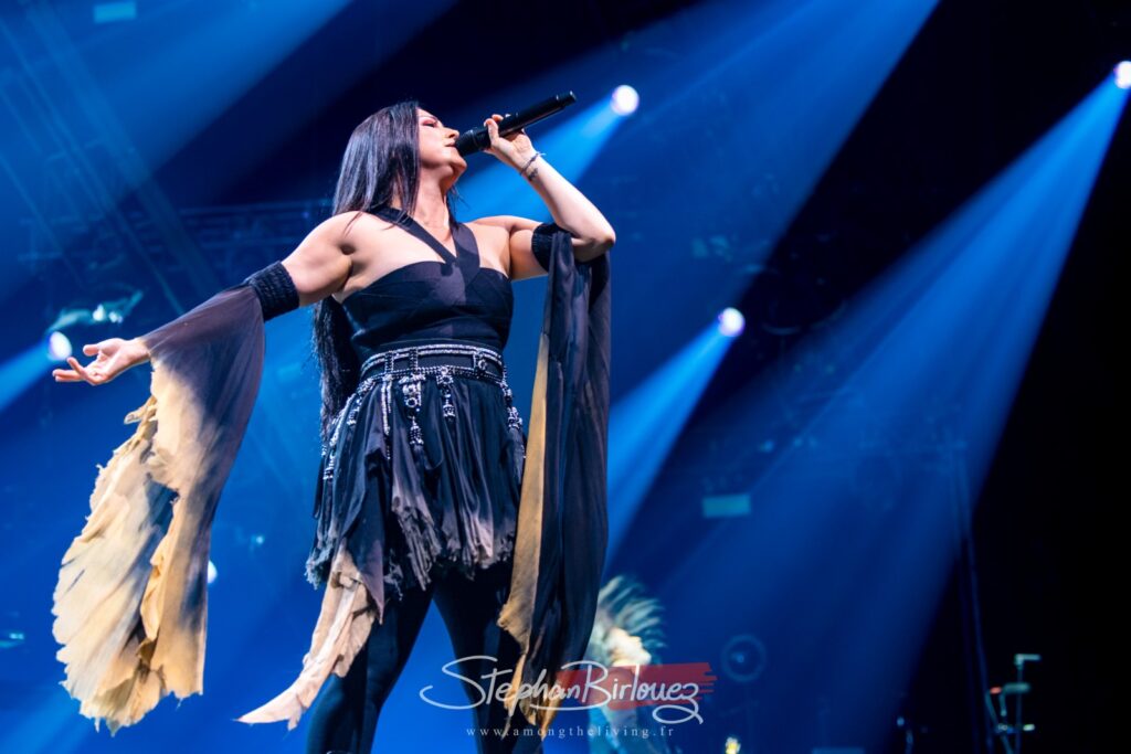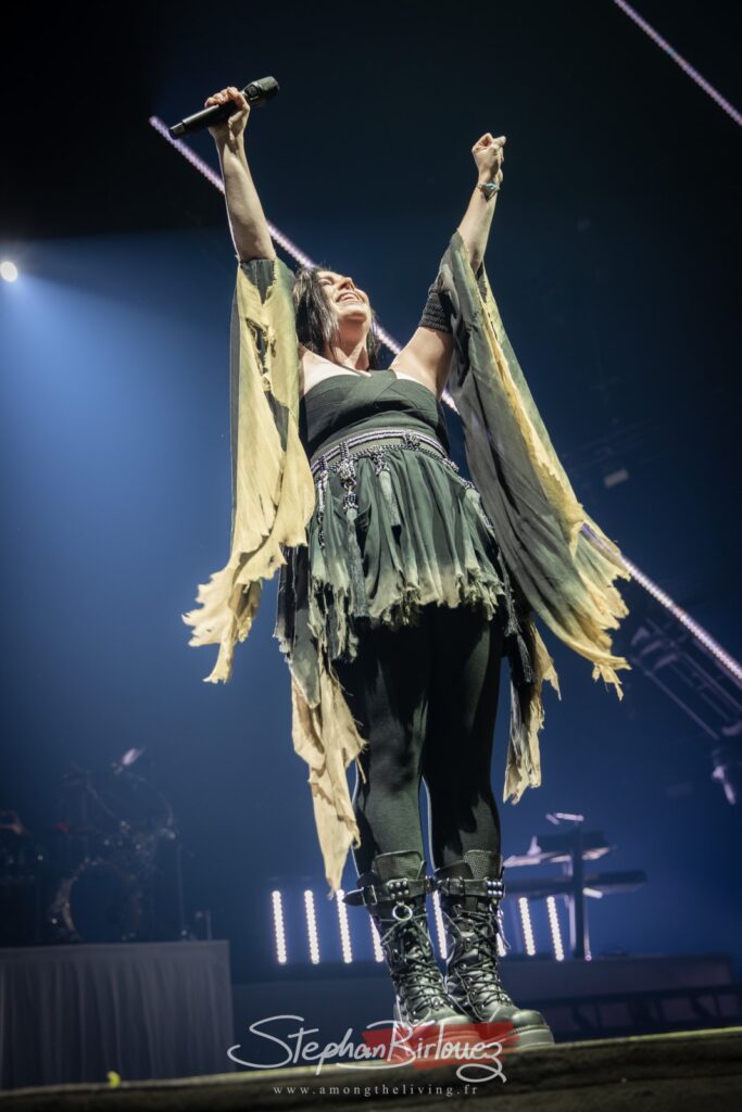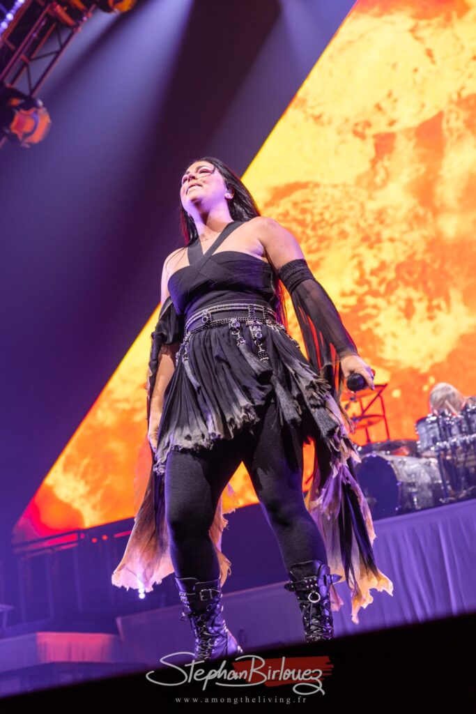 C’est donc au tour du monument WITHIN TEMPTATION de prendre place après une petite demi-heure d’entracte. Monumental est le groupe, mais aussi la scène et le show qu’ils vont offrir à leurs fans ce soir. Le visuel sera au niveau du son, avec son lot de pyro, d’avalanches de lumières et autres effets de fumigènes colorés.