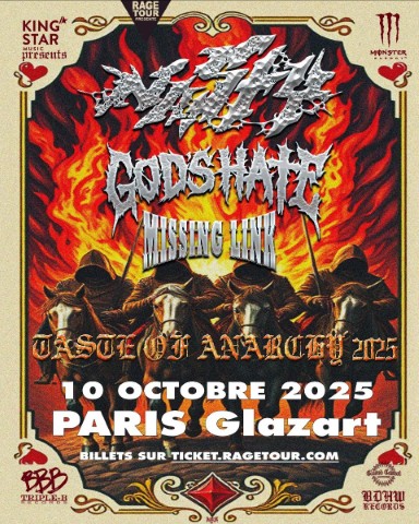 Nasty de retour dans la capitale ! Alors qu’ils viennent de sortir Black My Heart, un nouvel EP six titres, les Belges seront de passage au Glazart le 10 octobre prochain. Une date qui s’inscrit dans le cadre de leur tournée Taste Of Anarchy 2025 en compagnie des hardcoreux californiens de God’s Hate et de la sensation hxc new-yorkaise Missing Link. Ce qui promet, à n’en point douter, une soirée des plus brutales rythmée par les breakdowns et les moshparts.